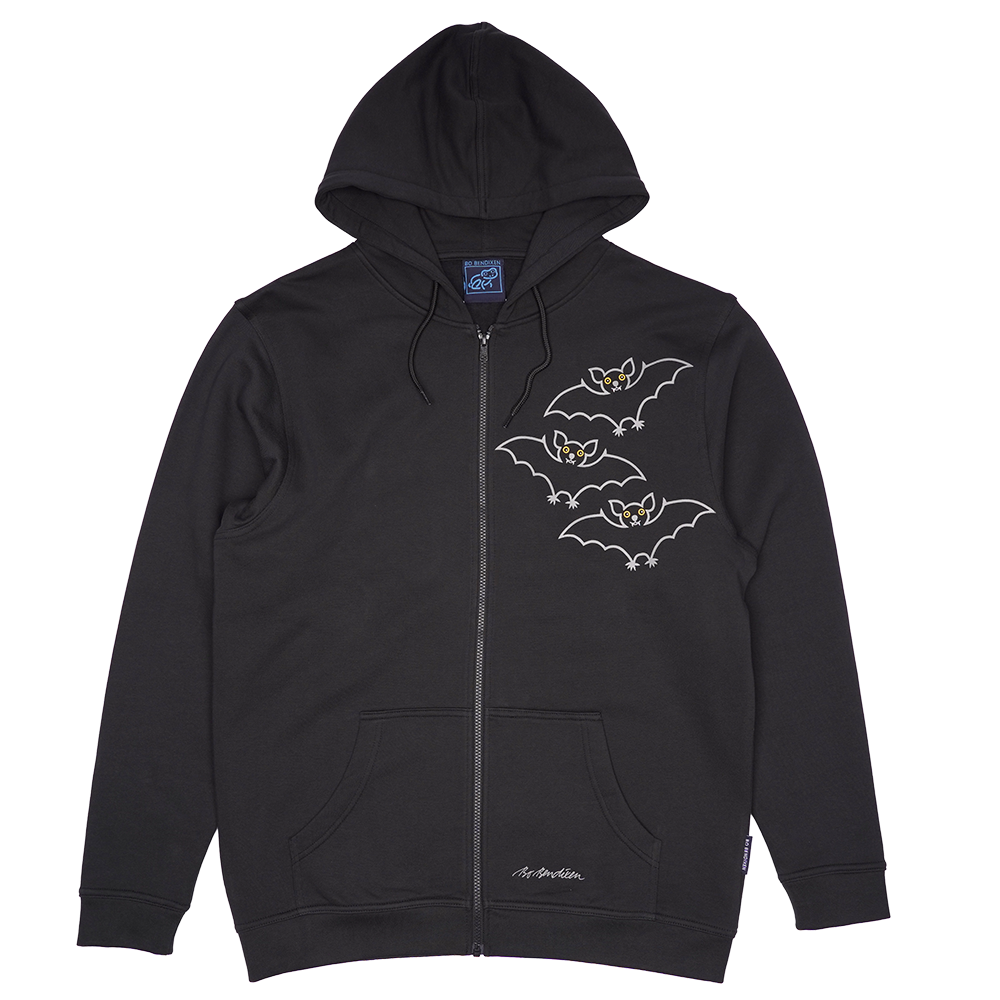 SWEATSHIRT VOKSEN M HÆTTE OG LYN FLAGERMUS SORT